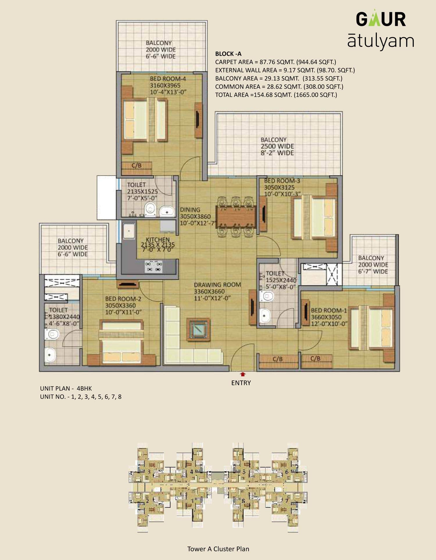 Gaur Atulyam is one of the most sought-after residential projects in Greater Noida. With the combination of coveted features and world-class amenities, Gaur Atulyam promises to make your living experience a treasure to cherish forever. The apartments, having a size range of 2BHK, 3BHK & 4BHK promise a pleasing life with their ultra-modern ambiance and lavish facilities. Benefiting from the remarkable location advantages with Pari Chowk, the proposed metro station, and the industrial area in close proximity, Gaur Atulyam is definitely a superior place Gaur Atulyam Sector Omicron 1 has 10 towers, with 19 floors each and 1464 units on offer. the investment in the property starts from INR 31.50 Lacs. For investors and buyers, this residential development is the best option in Greater Noida. For detailed information, the price list can be requested from our team. Our highly professional team would be very happy to assist you in this regard. Come explore an amazing residential landmark! Gaursons India is a trusted brand with huge popularity in the real estate arena!
