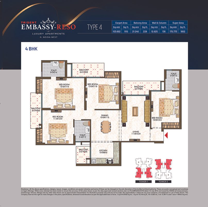 Envisaged to provide a wholesome experience of contemporary living, Trident Embassy-Reso is a luxury high-rise apartment amidst nature with state-of-the-art construction technology & ultra-modern amenities. Spread over 3.2 acres, Trident Embassy-Reso is the most sought-after project strategically located in Sector -1, Greater Noida (West). Shear-wall construction (popularly known as MIVAN) and an incredibly tranquil environment elevate your lifestyle. Trident Embassy-Reso presents you with a lifestyle, that is blessed with pristine nature, sophisticated innovation, opulent facilities, and exotic comfort coupled impressive range of homes. This luxury residential development combines the rich experience of on-time delivery commitment & contemporary construction techniques. Explore a perfectly designed lifestyle with endless possibilities that allows you to live the life you desire - a life of serenity, a life of comfort, a life of grandeur.