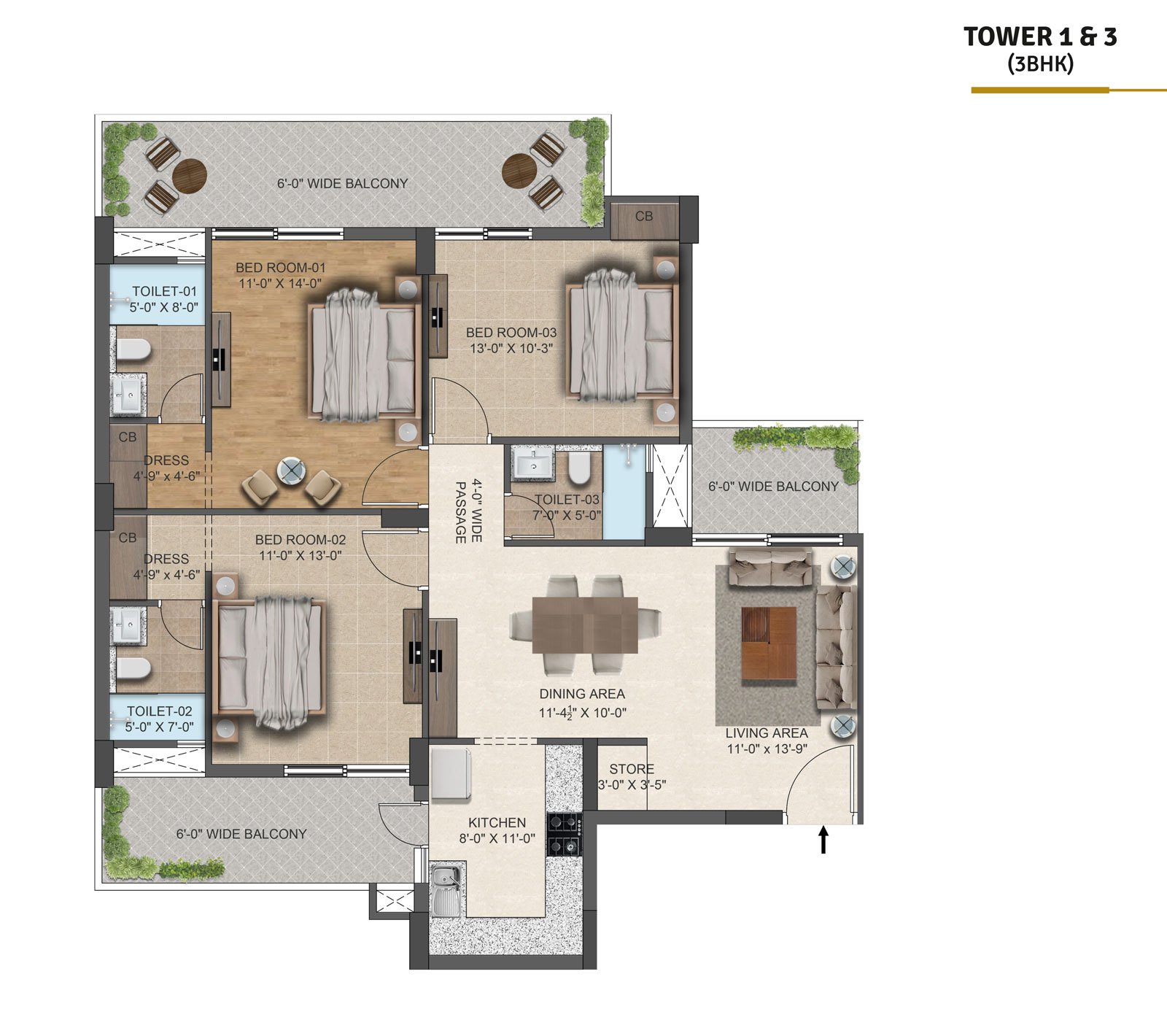 Aura Gazania offers an exceptional living experience with its meticulously designed 3 BHK luxury apartments in Zirakpur, promising a lifestyle of elegance and comfort for you and your loved ones. Each interior space is crafted with meticulous attention to detail, ensuring a seamless blend of style and functionality. Enjoy unrestricted access to sunlight, fresh air, and nature from every corner of these homes, complemented by distinctive architecture that maximizes ventilation and offers breathtaking views. At the heart of this residential haven lies the ‘Clubhouse’, a modern hub designed to enhance your social life with facilities such as a swimming pool, gymnasium, and a home theatre for movie nights. Whether you seek relaxation or recreation, there's something for every member of the family to unwind and rejuvenate amidst tranquil surroundings away from the city's hustle and bustle. Strategically located, Aura Gazania ensures convenience at every turn: just 2 minutes away from the nearest school, hospital, Radisson Blu Hotel, banquet hall, and petrol pump. The proximity extends to essential services with an 8-minute drive to the bus stand, Chandigarh city in 8 minutes, the nearest mall in 10 minutes, and the international airport in 16 minutes. Additionally, the railway station is a convenient 20-minute drive away, making Aura Gazania a perfect blend of luxury, convenience, and accessibility for discerning homeowners seeking the best in urban living.