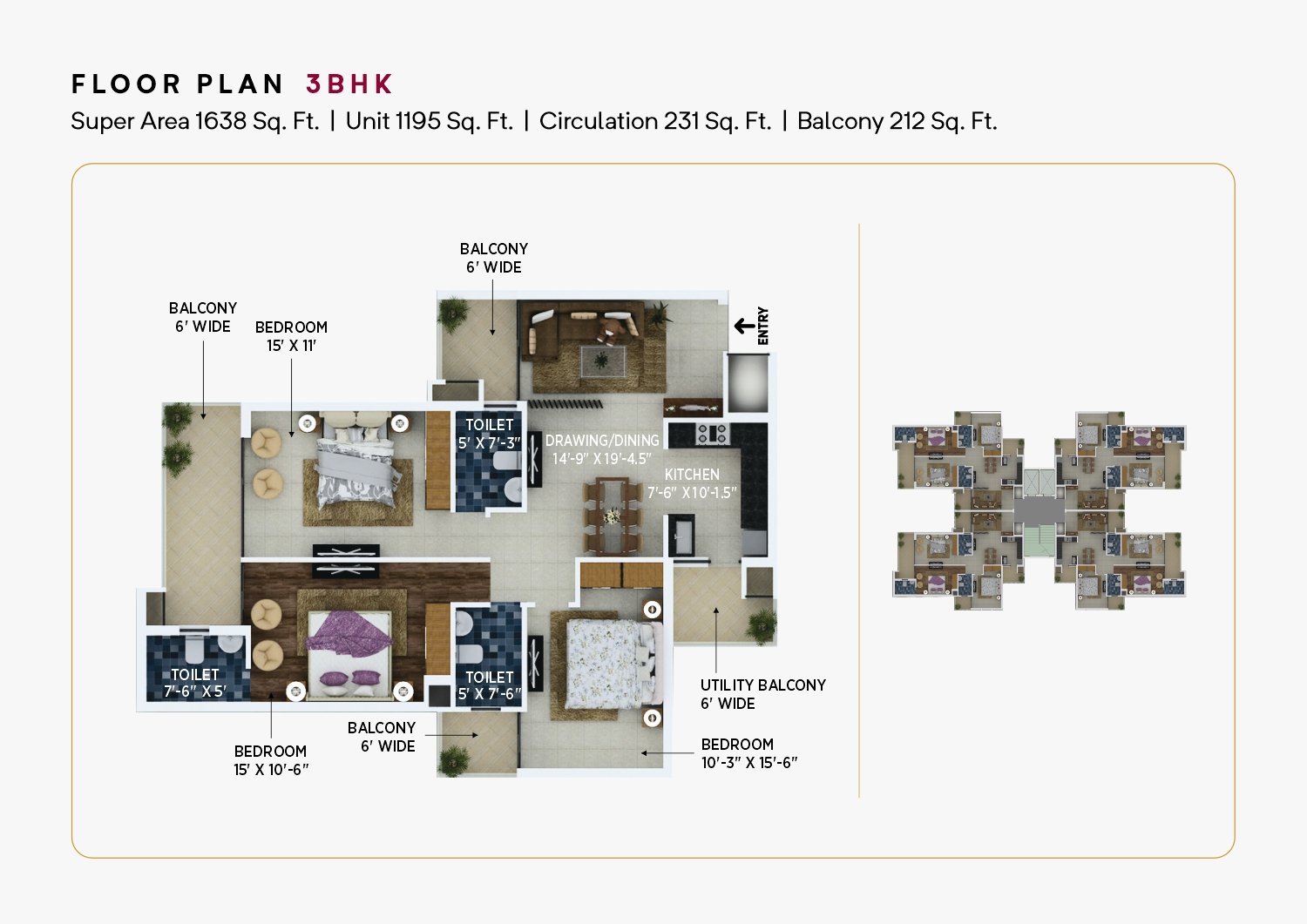El Spazia Elite Spanish Homes offers premier 3+1 BHK and 3 BHK flats in Zirakpur. Situated in the heart of Zirakpur on a sprawling 5.25 acres, El Spazia embodies a premium community living concept. Our meticulously crafted flats, including Duplex and Duplex Penthouses, strike a perfect balance between elegance and comfort, making us the top society in Zirakpur. The foundation of this remarkable project, El Spazia, rests on the 35+ years of construction expertise of Allwin Infrastructure Limited. As civil engineers themselves, Allwin Infra has successfully delivered numerous prestigious projects, establishing itself as the preferred construction company based on the pillars of Trust, Commitment, and Sustainability. Discover ready-to-move 3 BHK flats in Zirakpur that epitomize comfort and luxury. Our spacious living rooms, dining areas, and kitchens complement three elegantly designed bedrooms, each with an en-suite bathroom and large windows that ensure abundant natural light and ventilation. These flats are ideal for individuals seeking a living environment that prioritizes space and luxury.