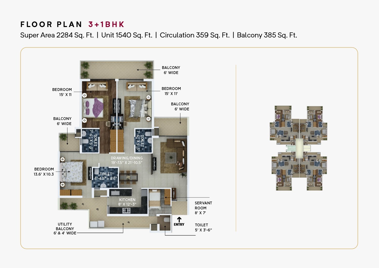 El Spazia Elite Spanish Homes offers premier 3+1 BHK and 3 BHK flats in Zirakpur. Situated in the heart of Zirakpur on a sprawling 5.25 acres, El Spazia embodies a premium community living concept. Our meticulously crafted flats, including Duplex and Duplex Penthouses, strike a perfect balance between elegance and comfort, making us the top society in Zirakpur. The foundation of this remarkable project, El Spazia, rests on the 35+ years of construction expertise of Allwin Infrastructure Limited. As civil engineers themselves, Allwin Infra has successfully delivered numerous prestigious projects, establishing itself as the preferred construction company based on the pillars of Trust, Commitment, and Sustainability. Discover ready-to-move 3 BHK flats in Zirakpur that epitomize comfort and luxury. Our spacious living rooms, dining areas, and kitchens complement three elegantly designed bedrooms, each with an en-suite bathroom and large windows that ensure abundant natural light and ventilation. These flats are ideal for individuals seeking a living environment that prioritizes space and luxury.