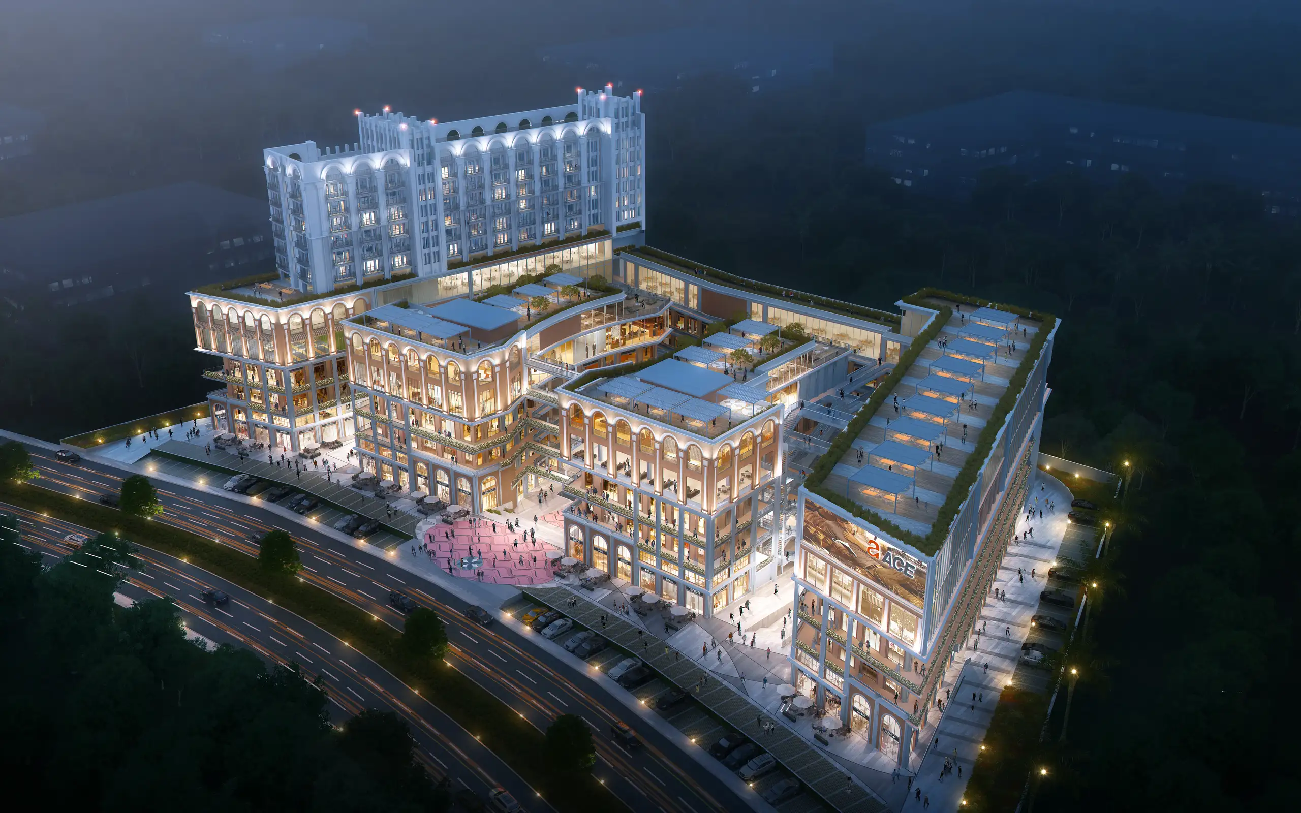 Ace YXP is a standout lifestyle center strategically positioned on the Yamuna Expressway. It's an all-encompassing destination that uniquely merges high-street retail, open-air restaurants, food courts, next-gen gaming zones, a premier multiplex, a banquet hall, upscale studio apartments, and 500 units spread across 4 floors. The center's architecture is inspired by the Art Deco movement, featuring themed landscapes, urban promenades, sophisticated elevators, captivating art installations, a serene fountain, and dynamic social hubs. This blend makes Ace YXP a magnet for a diverse crowd, offering an irresistible mix of commercial, social, and luxury elements. The excellent connectivity via the Expressway, proximity to major routes like the Delhi-Mumbai Industrial Corridor, and a proposed metro station add to its allure. Moreover, the area is becoming a tech hub, with major IT and manufacturing firms setting up, promising a substantial customer base for ACE YXP.