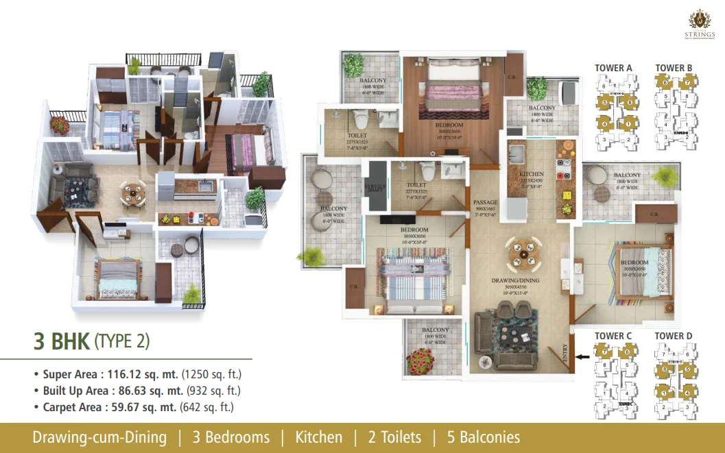 Civitech Strings at Sec-12, Greater Noida (West) is a premium residential project by the trusted Civitech Group, renowned for 29 years of excellence and over 10 delivered projects housing 5000+ happy families. Offering thoughtfully designed 2/3 BHK apartments, the project is set amidst a 6000 sq.mt. central park and features smart home automation—light, fan, geyser control, motion sensors, PNG leak detectors, and scene settings—for a modern lifestyle. The gated community includes four podium-based towers and world-class amenities like a swimming pool, clubhouse “Sangeet,” indoor games, kids' play zones, badminton and basketball courts, skating rink, yoga and meditation gardens, jogging/cycling tracks, and open-air theater. Structurally strong with earthquake-resistant RCC, aluminium formwork, and branded fittings (Jaquar, Parryware, Schneider), Civitech Strings ensures both safety and elegance with vitrified flooring, premium paints, granite kitchen tops, and UPVC/aluminium windows. With features like CCTV security, high-speed lifts, optical fiber readiness, and fire detection systems, it offers a blend of luxury, safety, and convenience. Combining contemporary style, quality construction, and a lush green setting, Civitech Strings promises an upgraded lifestyle and unmatched comfort in the heart of NCR.