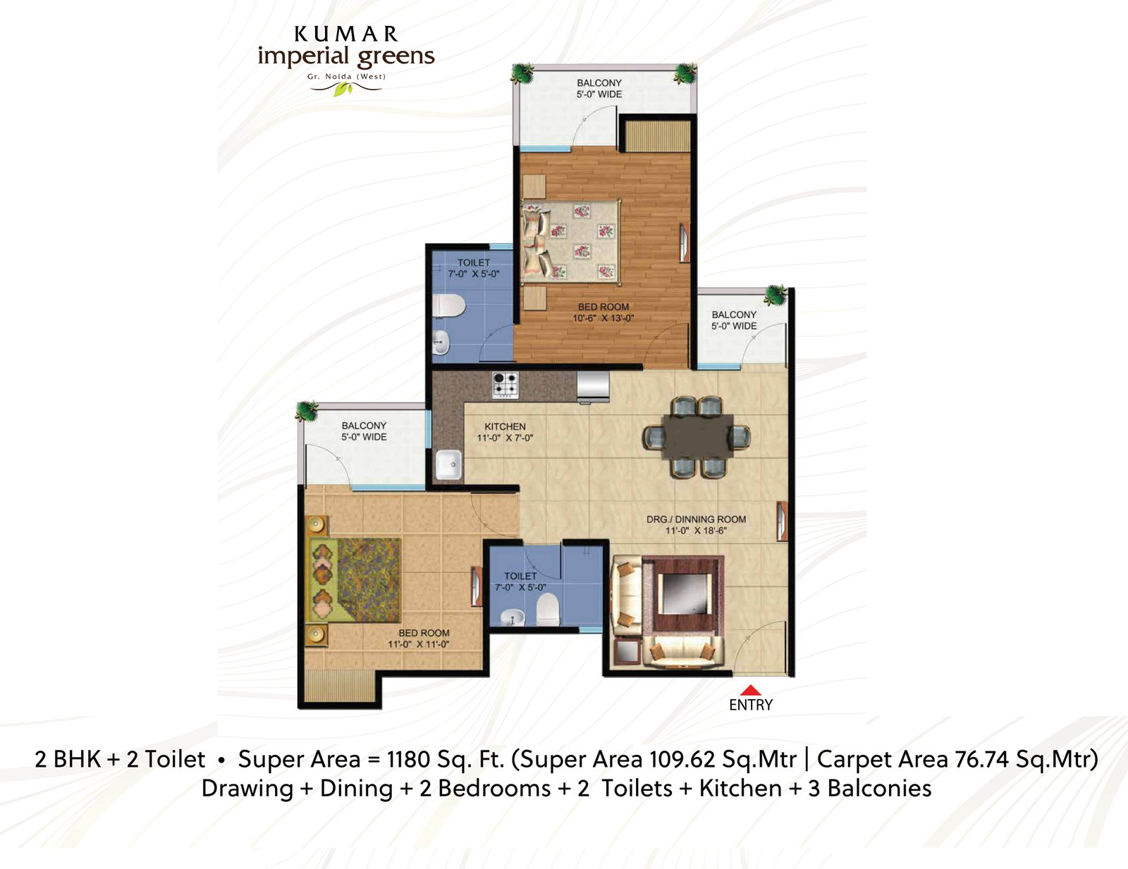 Kumar Imperial Greens is a latest residential project in Greater Noida (West) also known as Noida Extension. The project is 2, 3 & 4 BHK Apartments that all flats are designed in such a way. That each & every flat gets proper sunlight & ventilation. It is a multi-storied apartment and is providing good accommodation with all the latest facilities and amenities Tech security system. Kumar Imperial Greens provides you not just a shelter but beautiful and lush green surrounding that come along with these, nature and eco-friendly homes, These 2BHK, 3 BHK and 4 BHK flats in Noida is what everyone would fall in love with at first sight and would be eager to buy flats in Noida. Owning an apartment in Greater Noida West brings you a number of perks. Particularly, the seamless connection of this area to other parts of NCR makes lifestyle easy. Besides, you have plenty of commercial prospects around. If you are willing to invest in one of the new apartments in this region, go for Kumar Imperial Greens. This new gated community comes with a wide range of lifestyle and healthcare amenities for the residents. The estate brings you elegantly designed apartments in 2 and 3 BHK configurations. The prices start from ₹82.60 Lakhs in this project. The estate comes with as much as 78% open space. You have alluring amenities, such as flower deck, public lawn and a kid’s pool in the gated community. Besides, one can spend time in the mediation and yoga garden, cherishing the closeness to nature in this complex. Considering the high standard of lifestyle and range of amenities, the Kumar Imperial Greens price looks justified. The estate also has a commercial landscaped plaza. With deck setting, gym and swimming pool, you have a complete set of amenities in the project. Residing at Kumar Imperial Greens Noida Extn. would be a pleasurable experience for the families. The apartments get complete power and water backup all the time. Besides, you would enjoy the green zones in the complex. For kids, you have special play areas in the estate. During your leisure hours, you can visit the clubhouse and keep yourself engaged with lots of activities. The prime location of this gated community makes lifestyle convenient for the residents. Max Hospital, Fortis Hospital and Kailash Hospitals are located close to this gated community. You also have a number of reputed schools and colleges in this area. This includes the Millennial School, Ryan International School, and others. Over the years, the authorities have focused on strengthening the civic infrastructure in the city. This ensures that the residents can get across to the prominent locations around the city in quick time. The FNG Corridor, located close by, ensures a seamless connectivity to the rest of the city. Considering the ease of commitment and quality of lifestyle of the residents in the complex, it would be logical to purchase your home in the estate. You would love the ambiance that awaits you in the complex.