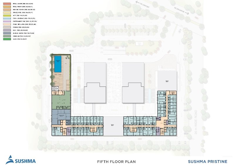Sushma Pristine, designed by US-based architects R-204, is among the largest business and retail centers being developed on the 200Ft Airport Road (PR-7) in Zirakpur. Covering an expansive 12 lakh square feet, Pristine offers commercial and business spaces strategically located just 10 minutes from Chandigarh International Airport, providing seamless connectivity to Punjab, Delhi, Himachal Pradesh, Haryana, and Chandigarh. This project features commercial and business spaces with exceptional visibility from Airport Road, including a convenient mini-mall for shopping, automobile showrooms, office spaces, retail outlets, fashion boutiques, food and beverage establishments, deck offices, serviced apartments, SOHO, and co-working spaces. First and largest commercial project on Airport Road. High catchment areas include Aerocity, IT City, Infosys, Ashoka University, and more. LEED-certified to maximize value appreciation. High visibility with a large residential catchment area, benefiting from over 10,000 apartments planned nearby. Corner plot location with separate access for service and support staff. Planned gym, steam, and sauna facilities serving up to 12,000 people working within the complex. Double basement and over 700 surface car parking spaces for an enhanced customer experience.