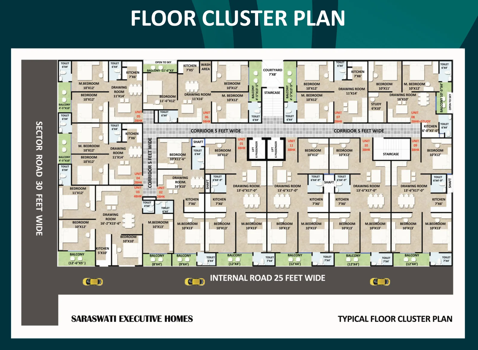 Sarswati Executive Homes in Knowledge Park V, Greater Noida West, offers premium 2, 3, and 4 BHK builder floor apartments designed for those who value comfort, style, and modern living. These homes are thoughtfully planned with Vastu-compliant layouts and built using high-quality materials to ensure durability and elegance. Each apartment features a modular kitchen, false ceiling in all rooms, latest design wardrobes, LED lights and fans, and premium sanitary fittings. The gated society provides a safe and serene environment with 24×7 security, CCTV surveillance, and two lifts for easy access. Residents also enjoy amenities like common parking, in-campus shopping market, continuous water supply, and a pollution-free atmosphere. With beautiful architectural elevation, door frame panelling, and a focus on timely delivery, Sarswati Executive Homes promises an ultra-luxurious lifestyle that blends quality with convenience. Strategically located, the project offers excellent connectivity and proximity to major landmarks. It is just a 5-minute drive from NU-MED and Yatharth Hospital, 2 minutes from D-Park and the proposed Jagannath Temple, and surrounded by 49 schools within a 2 km radius. Two proposed metro stations, Facebook and Google’s Yotta Data Center, and the 130-meter road are all within walking distance. Gaur Chowk, Yamuna Expressway, and Cyber Hub Greater Noida West are also easily accessible, while the upcoming metro connectivity to Noida City Center and Jewar Airport further enhances its location advantage. Additionally, residents can enjoy the natural beauty of the biggest Botanical Garden of Delhi-NCR, just a 5-minute walk away. Sarswati Executive Homes is where modern architecture, luxury, and location come together to create your perfect home.
