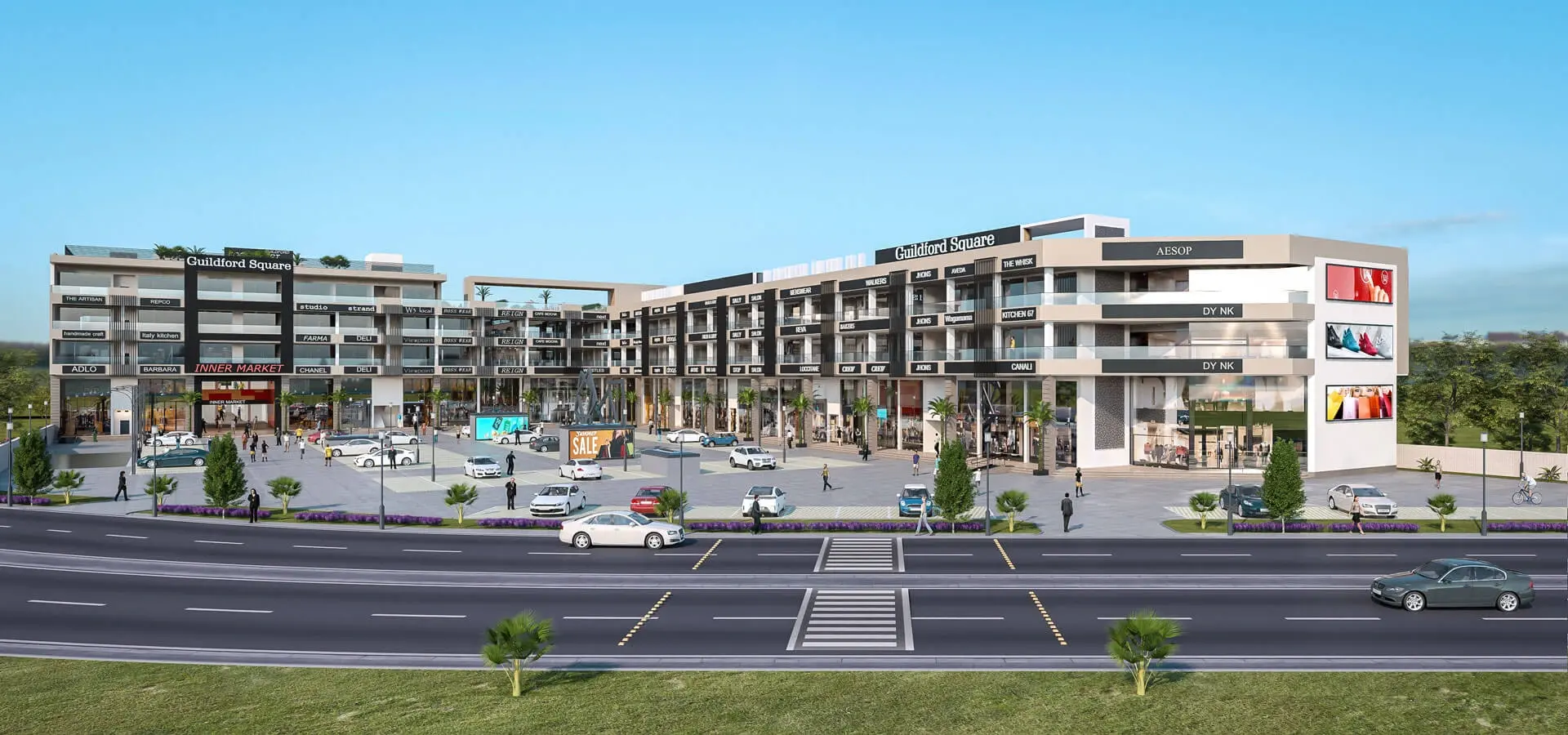 It is introducing Guildford Square, an exclusive gated shopping complex to redefine commercial investments and international lifestyle trends in Zirakpur's thriving landscape. Strategically located on PR7, Airport Road, this landmark project promises to elevate the local commercial scene with its premier retail spaces designed to attract approximately 1 million residents. Boasting a blend of upscale stores, gourmet dining options, and diverse entertainment facilities, Guildford Square aims to cater to a broad demographic, from mid-range shoppers to high-end clientele, offering a compelling destination for all ages. Spanning across 4 acres in the well-connected locality of Zirakpur, Guildford Square epitomizes architectural finesse and modernity. With 218 meticulously crafted units, including spacious commercial shops ranging from 390 sq. ft. each, the project ensures a blend of comfort and functionality. Designed by the esteemed Motia Group, renowned for its commitment to excellence, Guildford Square features earthquake-resistant structures, robust power backup, advanced security systems, and Vaastu-compliant designs, ensuring a secure and harmonious environment for its occupants. Guildford Square's meticulous planning extends to its comprehensive amenities, promising unparalleled convenience at a competitive price. Whether exploring the detailed floor plans to visualize the layout or experiencing the seamless integration of facilities firsthand, such as the project's anticipated completion in December 2021, Guildford Square stands as a testament to luxury and practicality in commercial real estate. From its prime location to its thoughtfully curated features, Guildford Square emerges as more than a commercial venture—it's a testament to modern living and investment potential, poised to set a new standard in Chandigarh's commercial landscape.